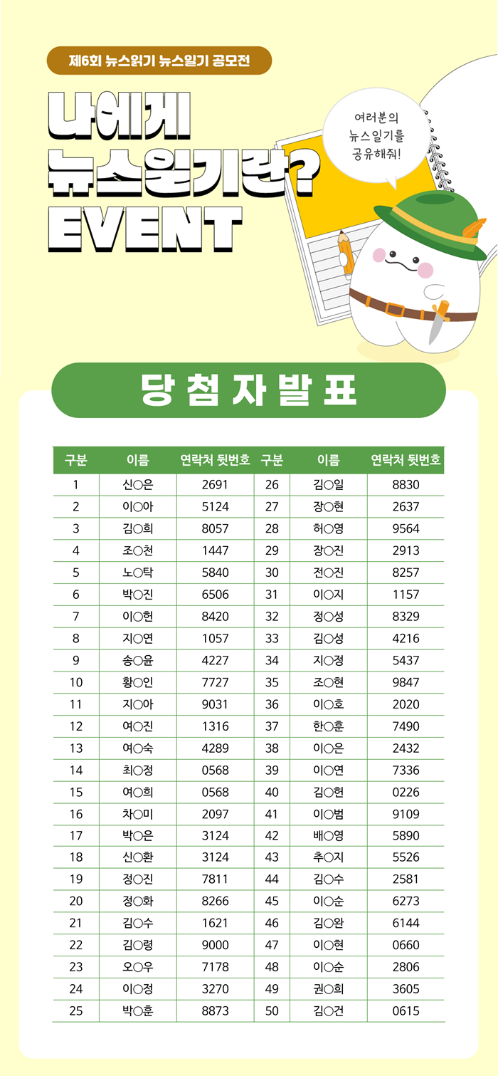 제6회 뉴스읽기 뉴스일기 공모전의 <나에게 뉴스일기란? 이벤트> 당첨자를 발표합니다!